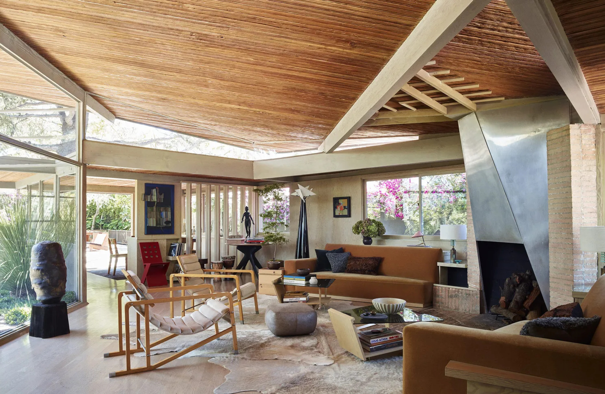 Modern sophistication. Warm whites in the primary suite, the classic Chesterfield featured in Marmol Radziner residential project in Los Angeles.