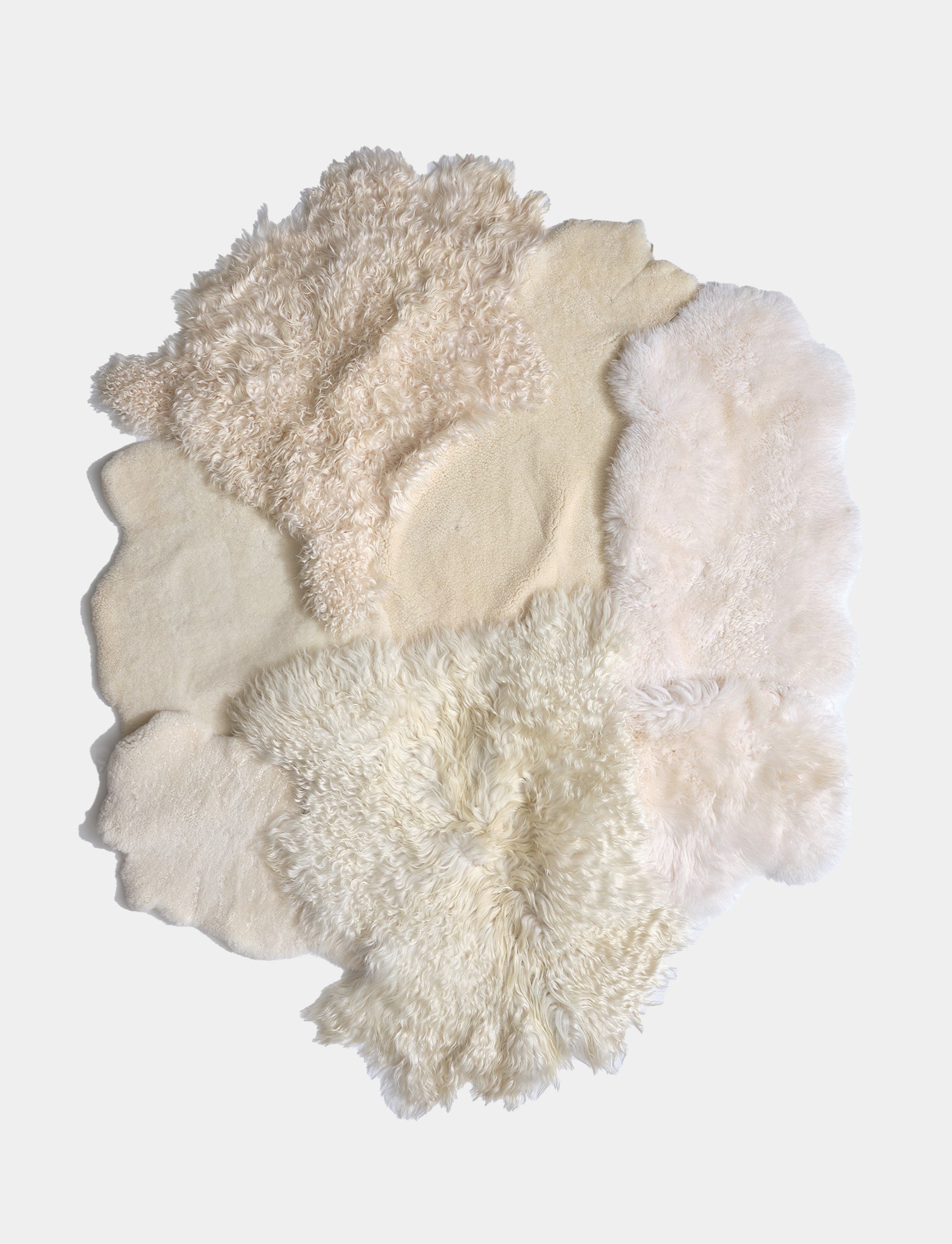 Pattern: Mixed sheepskin, shearling and goatskin hides